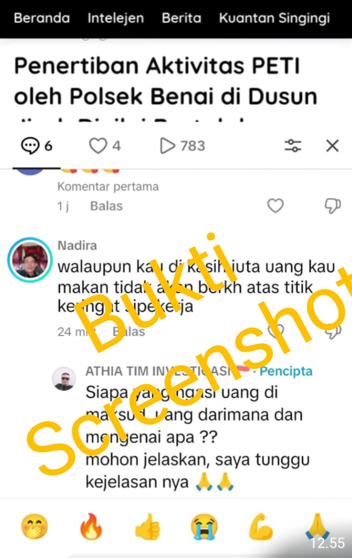 Berdasarkan penelusuran, tuduhan tersebut muncul setelah Athia mengunggah konten TikTok yang memuat hasil liputan investigasi Media IntelijenJendral.com tertanggal 15 Januari 2026. Pemberitaan tersebut mengulas dugaan tidak efektifnya penertiban aktivitas PETI oleh Polsek Benai di Dusun Jirak, Desa Tebing Tinggi, Kecamatan Benai.