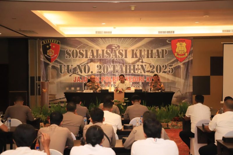 SUARARAKYAT.info||Kediri Kota – Polres Kediri Kota melalui Seksi Hukum (Si Hukum) bersama Satuan Reserse Kriminal (Satreskrim) menggelar sosialisasi perubahan Kitab Undang-Undang Hukum Pidana (KUHP) dan Kitab Undang-Undang Hukum Acara Pidana (KUHAP), Rabu (4/2/2026). Kegiatan tersebut dilaksanakan mulai pukul 08.00 WIB hingga selesai di Ballroom Tegowangi Grand Surya Hotel, Kota Kediri.