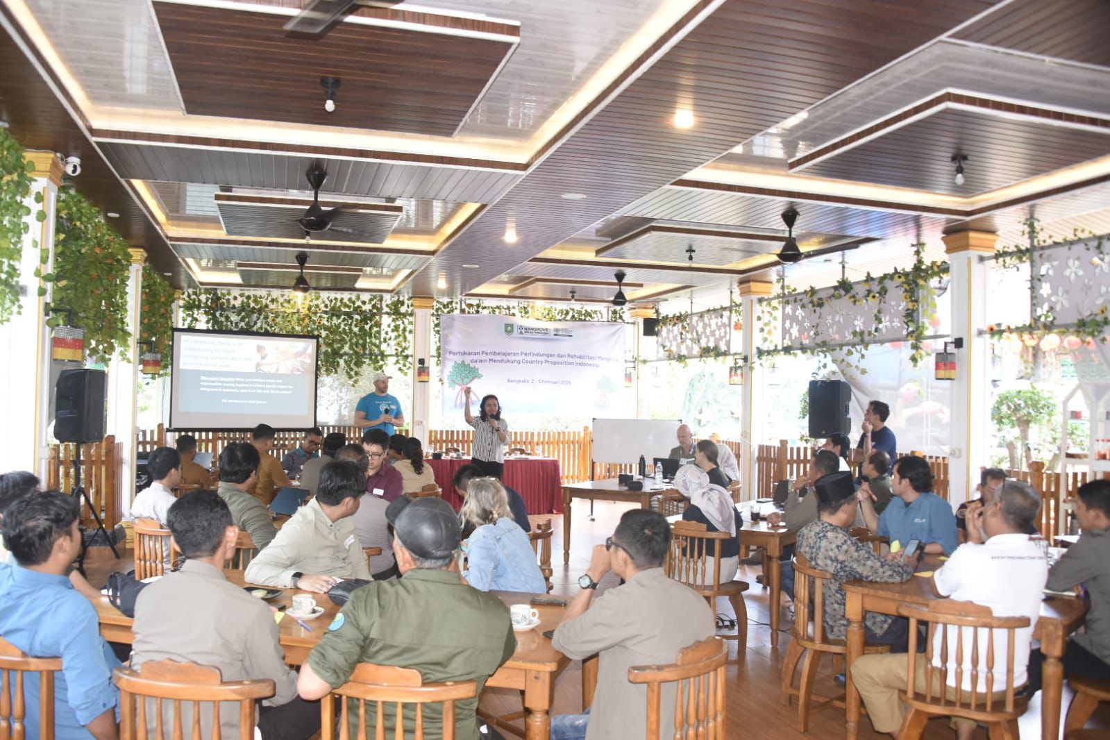 Agenda pertukaran pembelajaran pada 2–5 Februari 2026 diselenggarakan oleh Global Mangrove Alliance (GMA) Indonesia Chapter bekerja sama dengan LPHD Desa Teluk Pambang, Bengkalis. Rangkaian kegiatan meliputi diskusi, lokakarya, serta kunjungan lapangan yang menghadirkan narasumber internasional dari Amerika Serikat, Spanyol, Belanda, dan Filipina. Kehadiran peserta lintas negara tersebut menjadikan kebutuhan interpretasi sebagai elemen penting dalam kelancaran komunikasi.