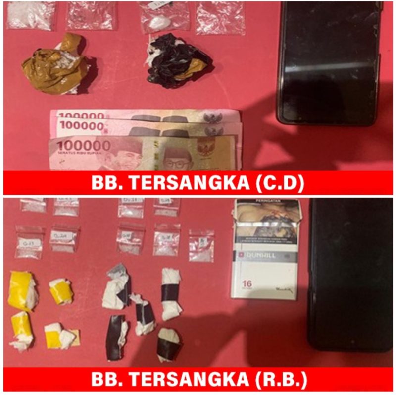 Dari tangan RB, petugas menyita sejumlah paket sabu siap edar dengan total berat 2,33 gram, sedangkan dari CD diamankan sabu seberat 3,36 gram, berikut uang tunai dan alat komunikasi yang diduga digunakan untuk transaksi narkotika.