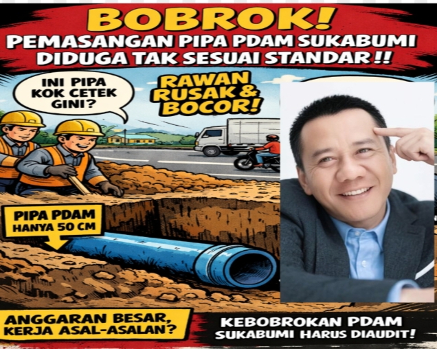 SUARARAKYAT.info || SUKABUMI — Dugaan pelaksanaan teknis yang tidak sesuai standar kembali mencuat di Kabupaten Sukabumi. Kali ini sorotan tajam tertuju pada Perusahaan Daerah Air Minum (PDAM) Kabupaten Sukabumi terkait penanaman pipa distribusi air berukuran besar yang bersumber dari Desa Pasirdoton, Kecamatan Cidahu.Jumat (13/2/2026)