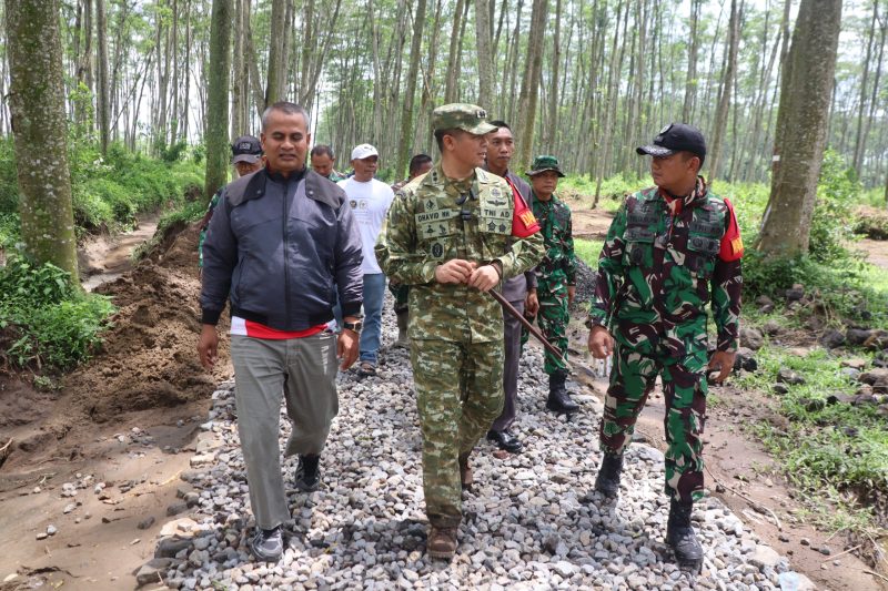 Peninjauan tersebut dilakukan untuk memastikan seluruh pelaksanaan program TMMD berjalan sesuai rencana, baik dari sisi kualitas pekerjaan maupun ketepatan waktu penyelesaian.