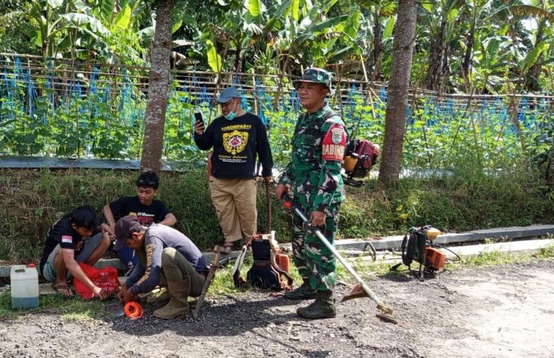 Babinsa Desa Sukajaya, U. Mulyana yang merupakan anggota Koramil 0607-05/Kecamatan Sukabumi jajaran Kodim 0607/Kota Sukabumi, bersama masyarakat bahu-membahu membersihkan lingkungan sekitar pemukiman warga.