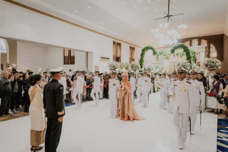 Bandung Jawa Barat – Nuansa sakral dan penuh kebanggaan menyelimuti pelaksanaan tradisi pedang pora dalam l pernikahan Kapten Marinir Akmal Hidayat Hasibuan dengan Letda Ckm (K) dr. Yuanita, yang berlangsung di Gedung Kodiklat TNI AD, Minggu (29/03/2026).