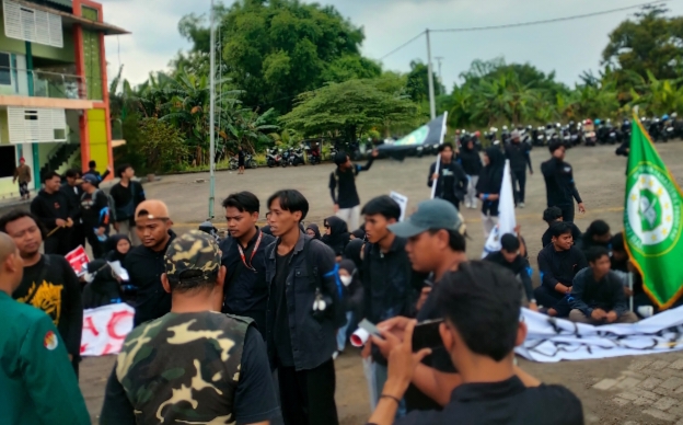 Mahasiswa yang tergabung dalam Kabinet Samasta tersebut datang dengan membawa tuntutan kepada pihak kampus. Namun, langkah mereka menuju titik aksi di dalam area kampus mendadak terhenti ketika akses jalan ditutup rapat oleh massa Banom yang berjaga di lokasi.