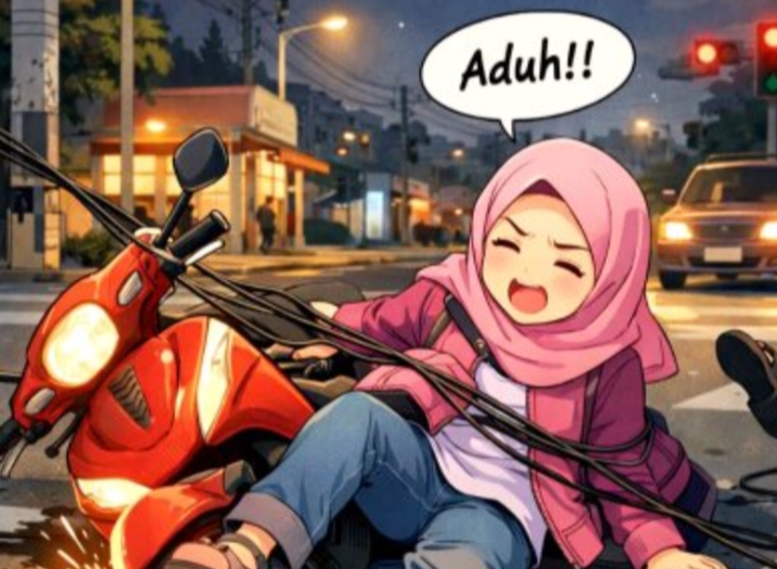Menurut keterangan warga di lokasi kejadian, korban saat itu melaju dalam kondisi normal. Namun secara tiba-tiba, sebuah kabel yang diduga milik penyedia layanan WiFi bernama WiFi Zeta dalam kondisi putus dan menggantung rendah melintang di jalan, langsung mengenai bagian leher korban. Hentakan keras akibat jeratan tersebut membuat korban terhempas dari kendaraan dan jatuh menghantam aspal.