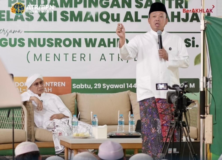 Hal tersebut disampaikan Nusron saat menghadiri kegiatan pendampingan santri kelas XII SMAIQu di Pondok Pesantren Al-Bahjah, Sabtu (18/04/2026). Di hadapan para santri serta pengasuh pesantren, Buya Yahya, Nusron menekankan pentingnya perluasan peran santri di era modern.
