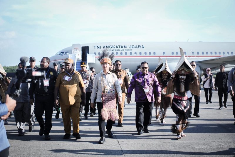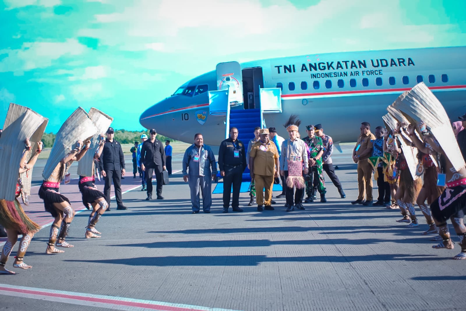 Penyambutan itu berlangsung Dengan budaya penampilan tarian adat Orang Asli Papua sebagai bentuk penghormatan kepada tamu negara.