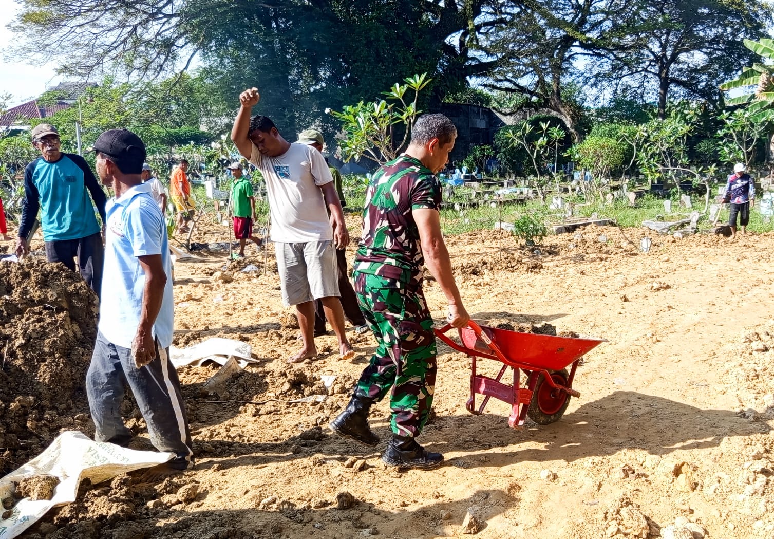 Suararakyat.info.Bojonegoro-Babinsa Koramil 09/Sumberrejo Kodim 0813 Bojonegoro, Serma Ali Sururi, bersama warga Dusun Tlumbung Desa/Kecamatan Sumberrejo Kabupaten Bojonegoro melakukan karya bakti pembersihan dan peninggian area…