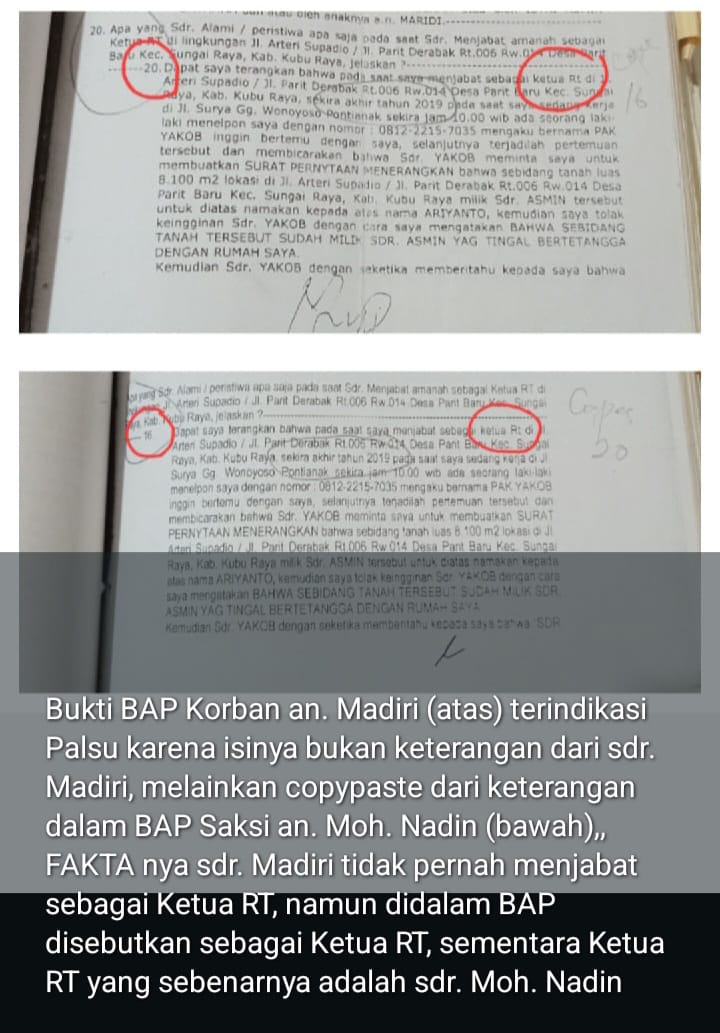 SUARARAKYAT.info||Mempawah, Kalimantan Barat-Dugaan pemalsuan dokumen dalam kasus sengketa tanah di Parit Derabak, Desa Parit Baru Kec. Sungai Raya, memasuki babak baru. Dalam sidang pembuktian…