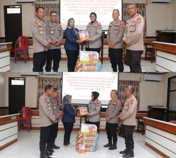 SUARARAKYAT.info||Maluku -Bertempat di Aula Endra Dharmalaksana Polres Buru, Rabu (18/10/2025), dilaksanakan kegiatan penyerahan secara simbolis bibit jagung pipil dari Kapolres Buru kepada Kepala Desa…