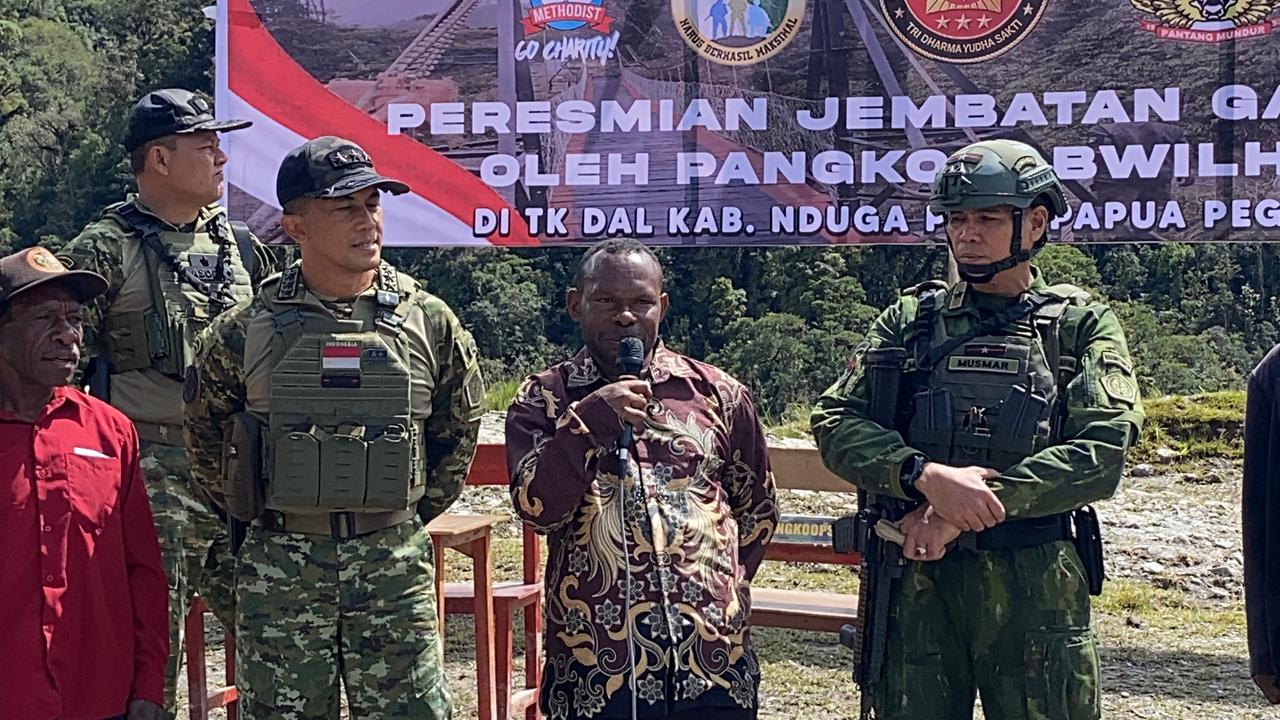 SUARARAKYAT.info||Nduga, Papua — Panglima Komando Gabungan Wilayah Pertahanan III (Pangkogabwilhan III), Letjen TNI Bambang Trisnohadi, secara resmi meresmikan Jembatan Gantung Kampung (KP) Dal di…