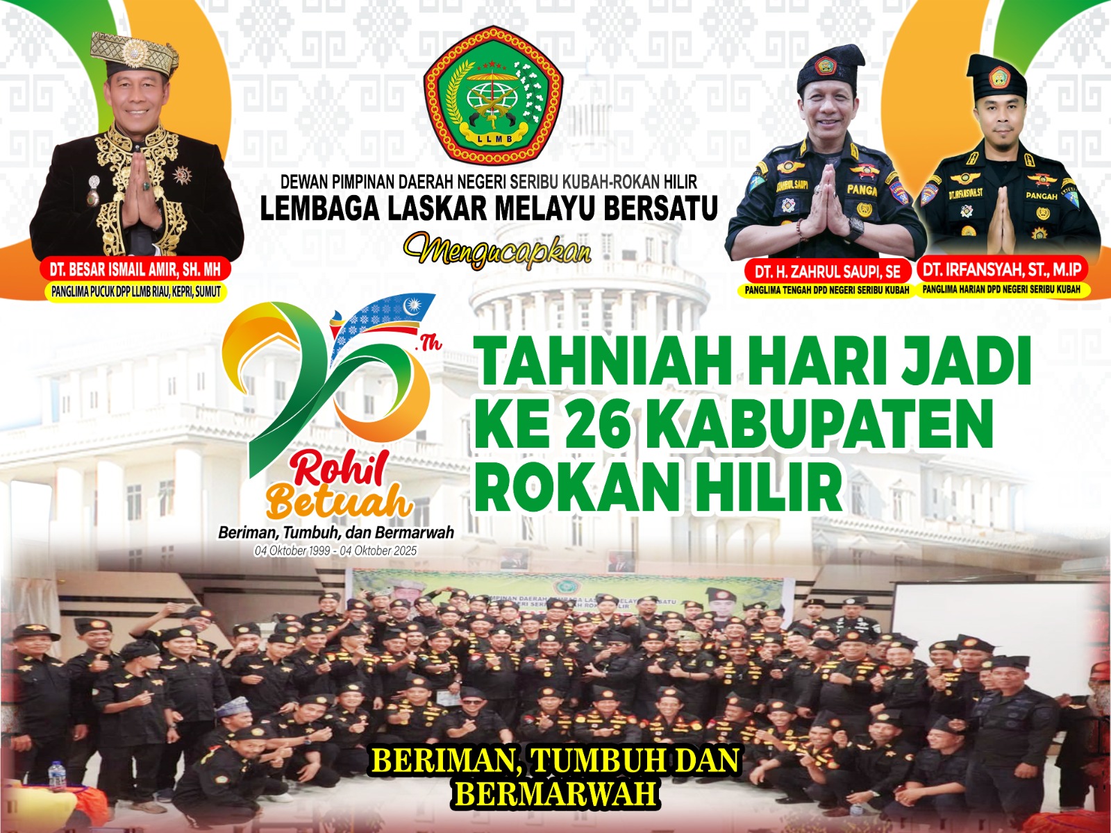 SUARARAKYAT.info||Rokan Hilir-memasuki usia ke-26 tahun sejak resmi berdiri pada 4 Oktober 1999. Momen peringatan hari jadi tahun ini mengusung tema “Beriman, Tumbuh, dan Bermarwah”…