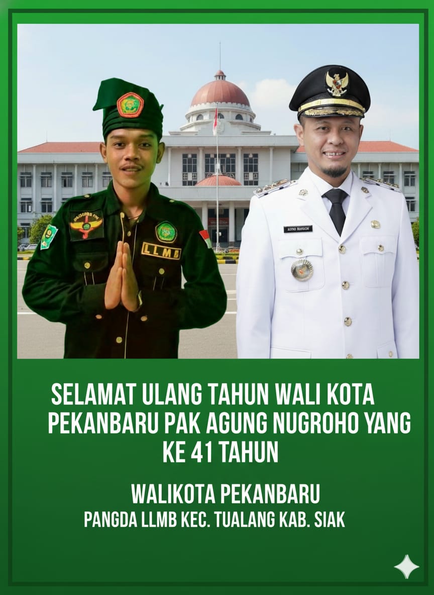 SUARARAKYAT.info||Tualang- Angga Fadli dari PANGDA LLMB Kecamatan Tualang, Kabupaten Siak, mengucapkan selamat ulang tahun kepada Walikota Pekanbaru, Bapak Agung Nugroho. “Saya dan teman-teman PANGDA…